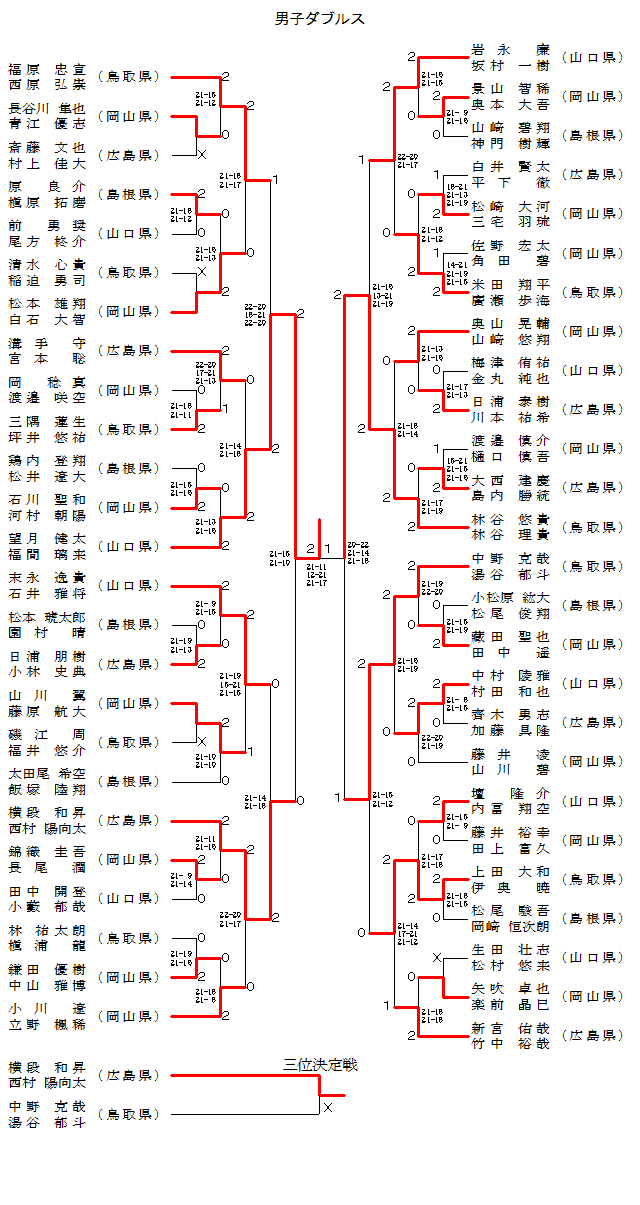 MD-23 | ŽRŒûŒ§ | –]ŒŽ Œ’‘¾E•ŸŠÔ —ž—ˆ | ‚Q | 21-13 21-16 | ‚O | Îì ¹˜aE‰Í‘º ’©—z | ‰ªŽRŒ§ | |